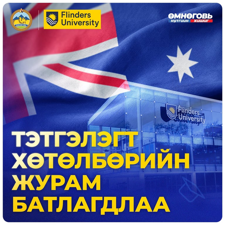 Өмнөговь аймгийн Засаг даргын захирамжаар Австрали улсын Флиндерсийн их сургуульд суралцах тэтгэлэгт хөтөлбөрийн журмыг баталлаа.
